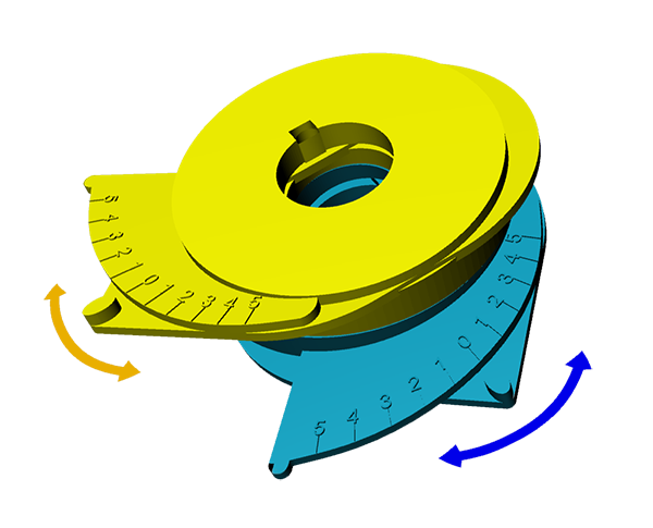 - Slide blue pitch disc with scale up against last yellow component, either as shown, or rotated by 180° for opposite side of the boat. Lubricate.